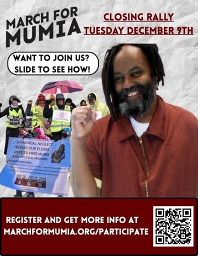 This statement was issued by the March for Mumia on Dec. 8: A rally on Dec. 9 will mark the end of the 103-mile walk from Philadelphia to Frackville, Pennsylvania, to highlight prison abuses and to free Mumia Abu-Jamal. In the words of Mumia, “Many people say it is insane . . .