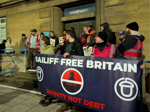 We are demanding an end to the cruel use of bailiffs against our communities when people are at their most vulnerable.