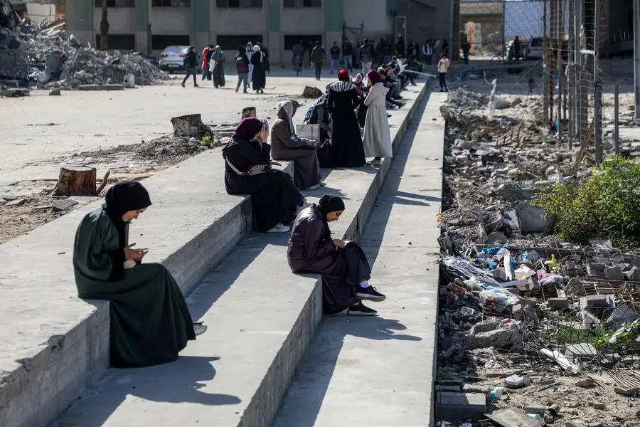 Palestinian students sit in the campus of Islamic University, in Gaza City. Photo: Xinhua