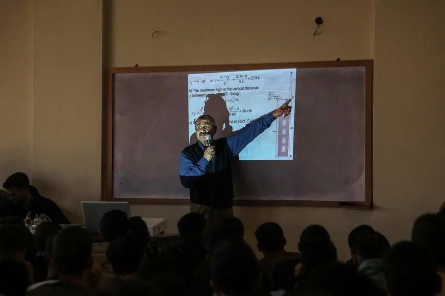 A teacher gives a lesson at Islamic University, in Gaza City. Photo: Xinhua