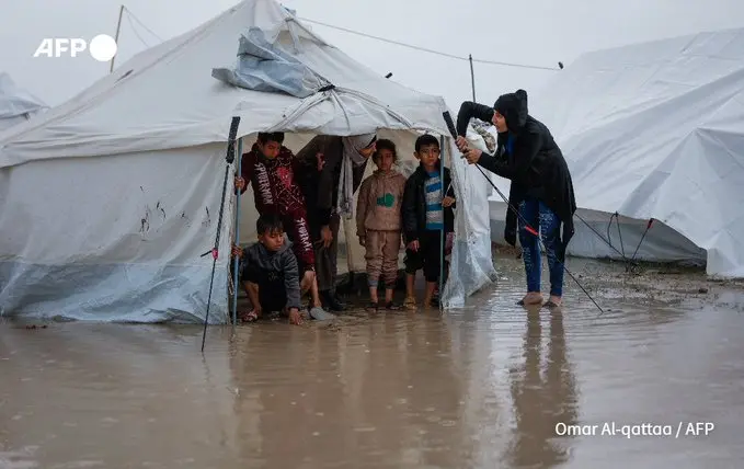 Authorities in Gaza reported that more than 22,000 tents in refugee camps were completely destroyed after days of heavy rain and strong winds. Ismail Al-Thawabta, director of the Government Information Office in Gaza, said the current circumstances are “critical,” noting that severe weather has damaged tens of thousands of additional tents and ruined essential supplies such as insulating covers and blankets.