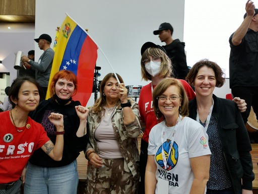 Caracas, Venezuela – On the evening of December 10, U.S. delegates to the People’s Assembly for Sovereignty and Peace in our America joined other internationalists at the Venezuelan Ministry of Popular Power for Women to learn from leaders of the women’s movement and come together in celebration of the women’s struggle around the world.