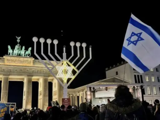 Hanukkah candles were also lit in the ruins of Tulkarm refugee camp in the West Bank. In January 2025, Tulkarm, Nur Shams, and Jenin refugee camps were raided by the Israeli occupation, during Operation Iron Wall. Hundreds of homes were damaged or destroyed, and 32,000 Palestinians were forcibly displaced. They are still not permitted to return to what remains of their homes.