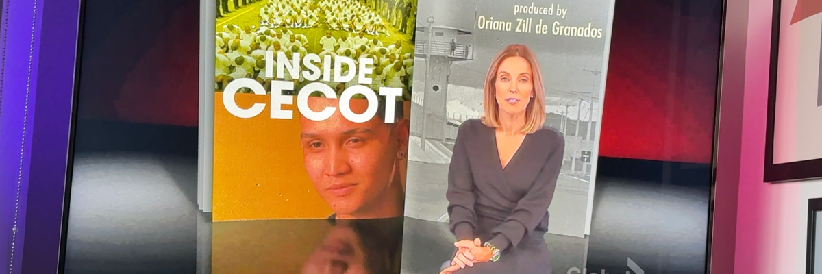 The segment is titled “Inside CECOT,” the Spanish abbreviation for El Salvador’s Terrorism Confinement Center.