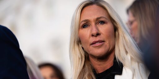 In a neat turn of phrase, Greene framed war with Iran as not only a waste of money and resources but also as the administration taking its eye off the real threat: fentanyl and other drugs coming from Latin America. Where were the bombing campaigns on cartel targets, she asked, adding, “I don’t know anyone in America who has been the victim of a crime or killed by Iran, but I know many people who have been victims of crime committed by criminal illegal aliens or MURDERED by Cartel and Chinese fentanyl/drugs.”