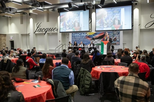Chicago, IL – On December 20, over 175 people gathered in the Chicago Teachers Union Hall to stand in solidarity with Gustavo Petro and the people of Colombia as their country faces an intensification of U.S. aggression.