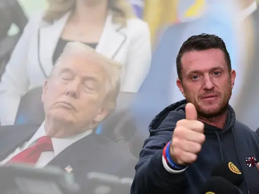 For reference: Tommy Fraudulent Robinson is addressing Donald Trump, whose own record includes expanded drone warfare, mass civilian casualties, support for genocide and repressive allies, hardly a model of “liberation.”