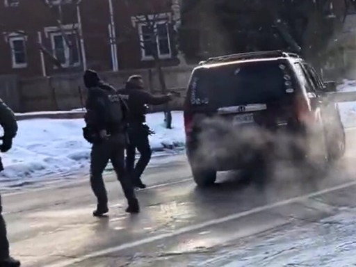 One of the longest clips shows the woman attempting to ‘three point turn’ her car to leave the scene before agents then approach the car intending to drag her out. An agent fires through the car window at point-blank range as she tries to get away.