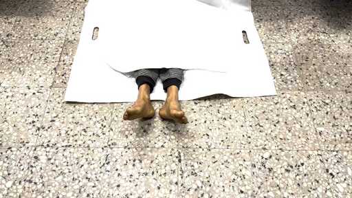Hamsa Housou lies dead in the morgue of Al-Shifa hospital after being killed in an Israeli attack on her home in Jabaliya. January 8, 2026. (Video provided by Abdel Qader Sabbah).