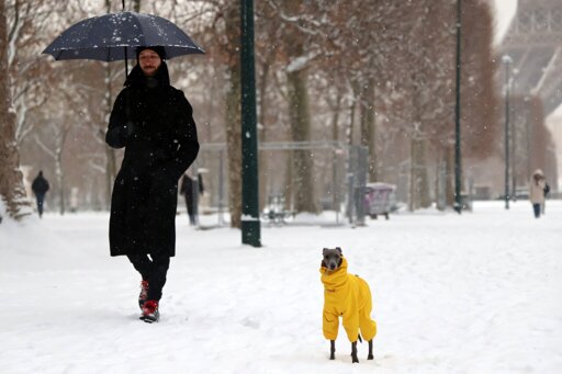 Fierce winds battered France and Britain on Friday as storms barreled through northern Europe, snarling train travel, shutting schools and cutting power to hundreds of thousands of homes in plunging winter temperatures.