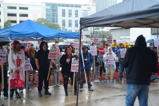 The emergency rally was called earlier that day by the Freedom Road Socialist Organization and was endorsed by numerous organizations, including: the Jacksonville Palestine Solidarity Network, the Jacksonville Community Action Committee, the Jacksonville Immigrants’ Rights Alliance, the Jacksonville chapter of the Democratic Socialists of America, and many more.