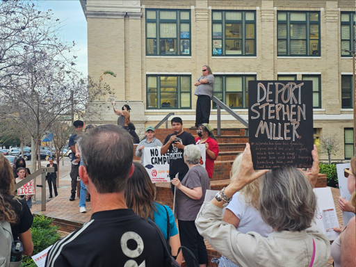 The event was organized by Tampa Bay Students for a Democratic Society and the Tampa Immigrants’ Rights Committee. The protest called for ICE out of everywhere, stop the deportations, justice for all murdered by ICE, and justice for Renee Good. The crowd chanted “ICE off our streets,” “Say her name! Renee Nicole Good!” and “No troops on the ground, no ICE in our streets, end 287(g)!” Several drivers passing by the event honked and cheered in support.
