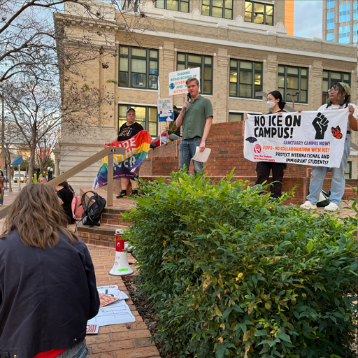 The rally featured speakers from Tampa Immigrants Rights Committee, Freedom Road Socialist Organization, and Tampa Bay Students for a Democratic Society. Speakers were united in the demand to arrest and charge killer ICE agent Jonathan Ross and to get ICE off our streets.