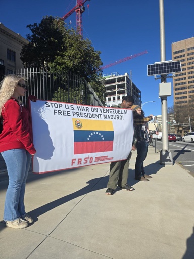 Atlanta, GA – Dozens of community members, activists, and trade unionists rallied January 11 outside the Georgia State Capitol to demand no U.S. war on Venezuela and that President Nicolás Maduro be freed immediately.