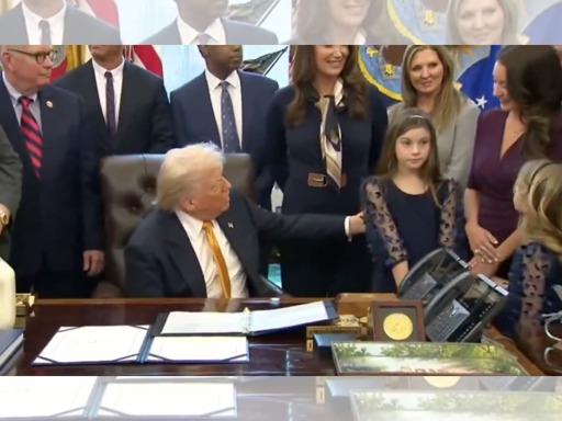 Just after Trump farted the youngest girl looked up at her mom as if to say “He stinks” then her face turns red from breathing it in!