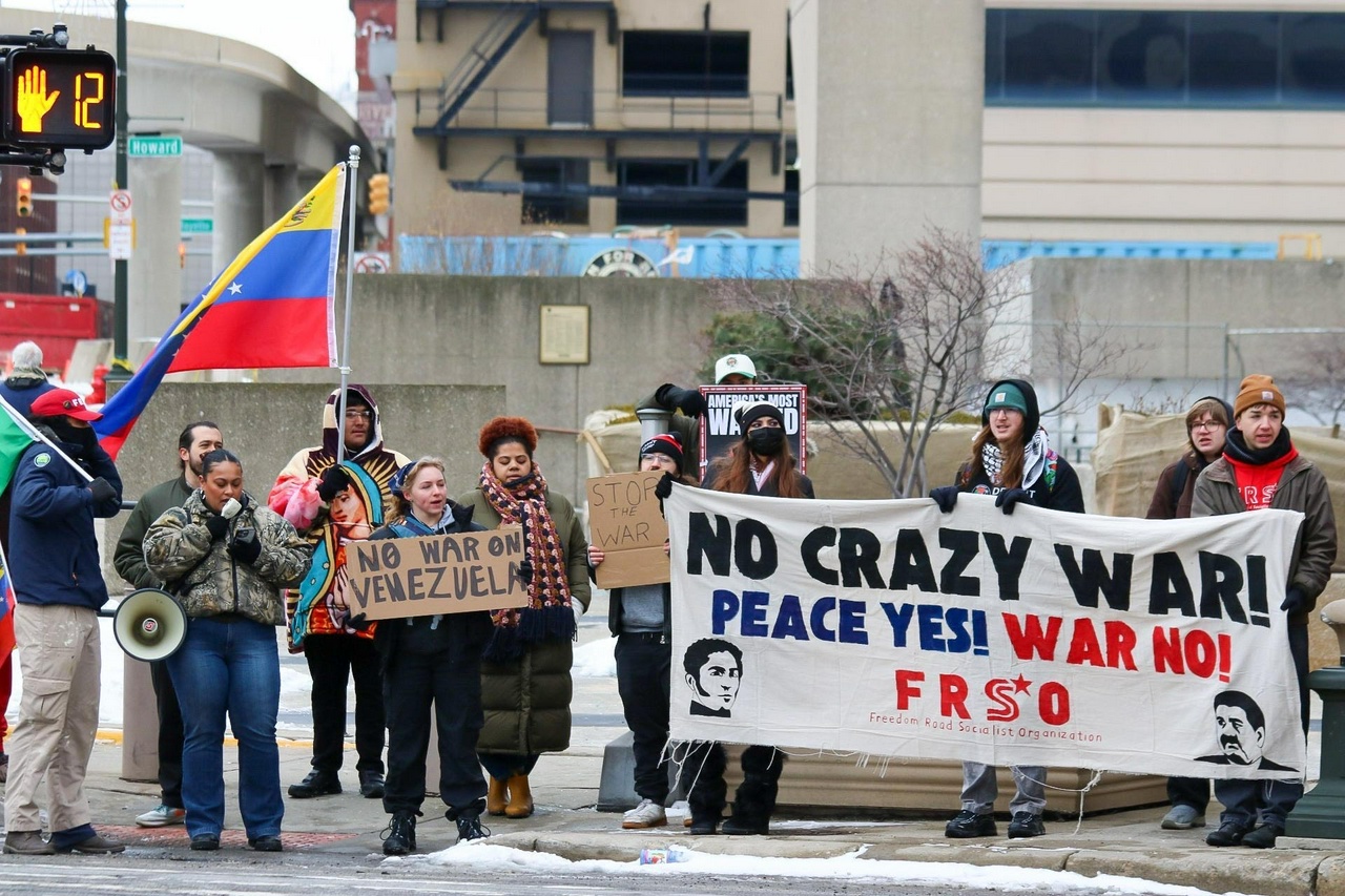The anti-war movement also showed up. HighligJo Pico of Detroit Anti-War Committee stated, “There’s a reason why Trump is here today to speak to the Detroit Economic Club, which hosts Zionists like Dan Gilbert and his political allies like former Mayor Mike Duggan. Trump, like many of our politicians, sees war as a way to make himself and his friends richer. Because of that, this war on Venezuela does not shock us. Trump is too stupid to even hide his reasoning. He wants Venezuela’s gold, he wants their oil, he wants their country.”
