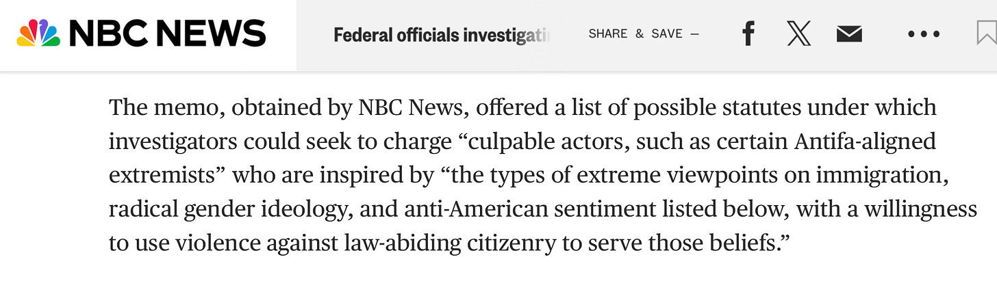 NBC News did a story today about a Justice Department directive signed by Pam Bondi targeting “radical gender ideology, anti-Americanism, anti-capitalism…[and] anti-Christianity” — all a part of NSPM-7, as I’ve been covering for months. NBC’s initial story acknowledged that Bondi’s order was “first published by journalist Ken Klippenstein,” but the sentence that was swiftly (and silently) removed.