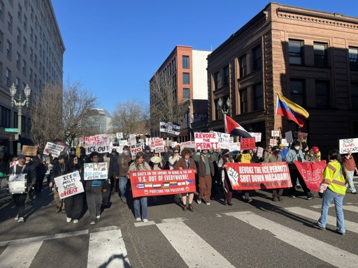 On January 17, Portland contra las Deportaciones (PDXCD) led the rally and march alongside Portland for Palestine and the Freedom Road Socialist Organization (FRSO), and the International League of People’s Struggle (ILPS).