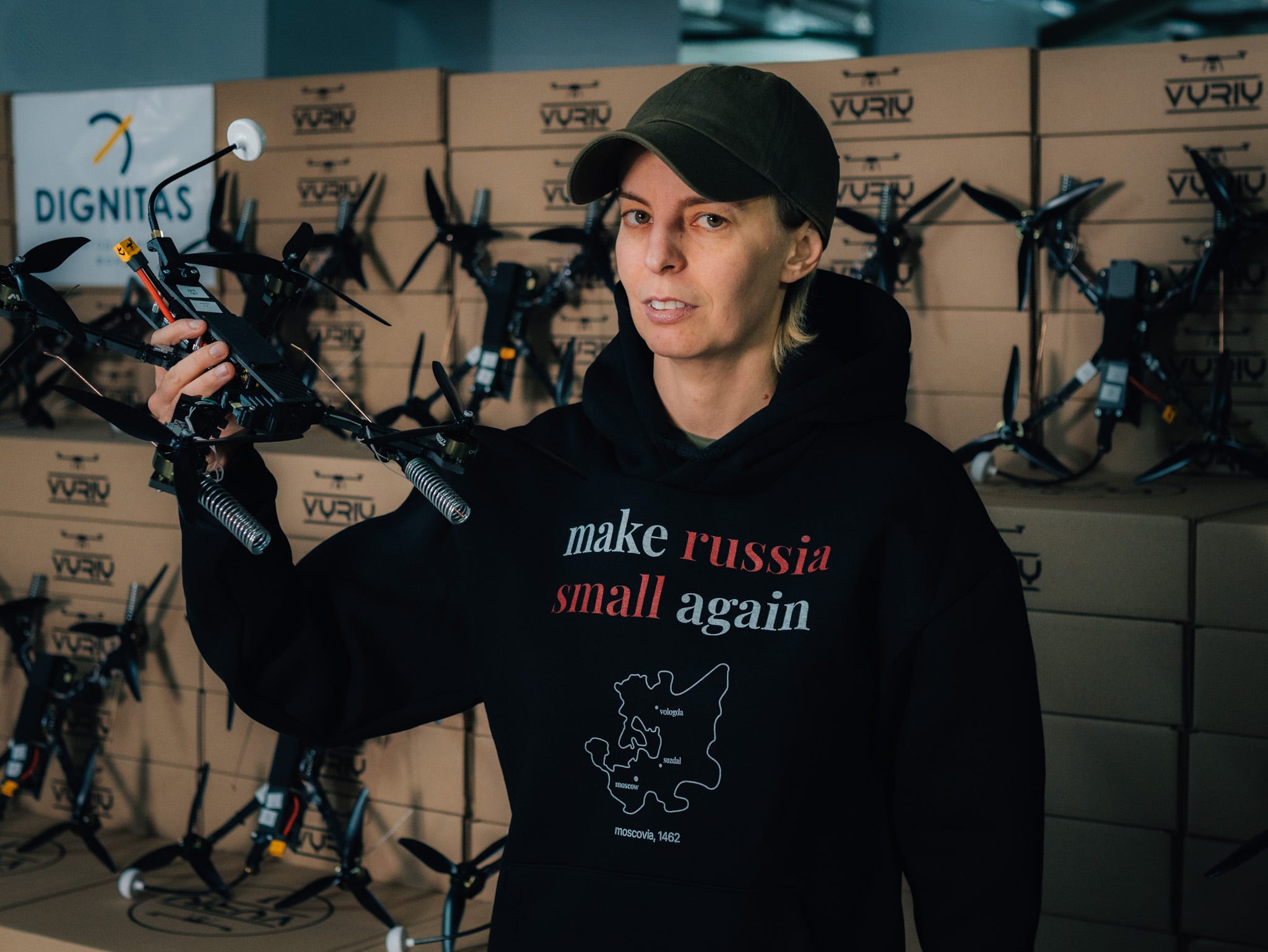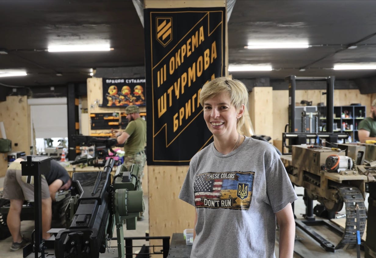 Kyiv Post at Killhouse Academy: “Lyuba Shipovich, co-founder of Razom for Ukraine and current CEO of Dignitas, at a training facility for ground robotic systems in Ukraine.”