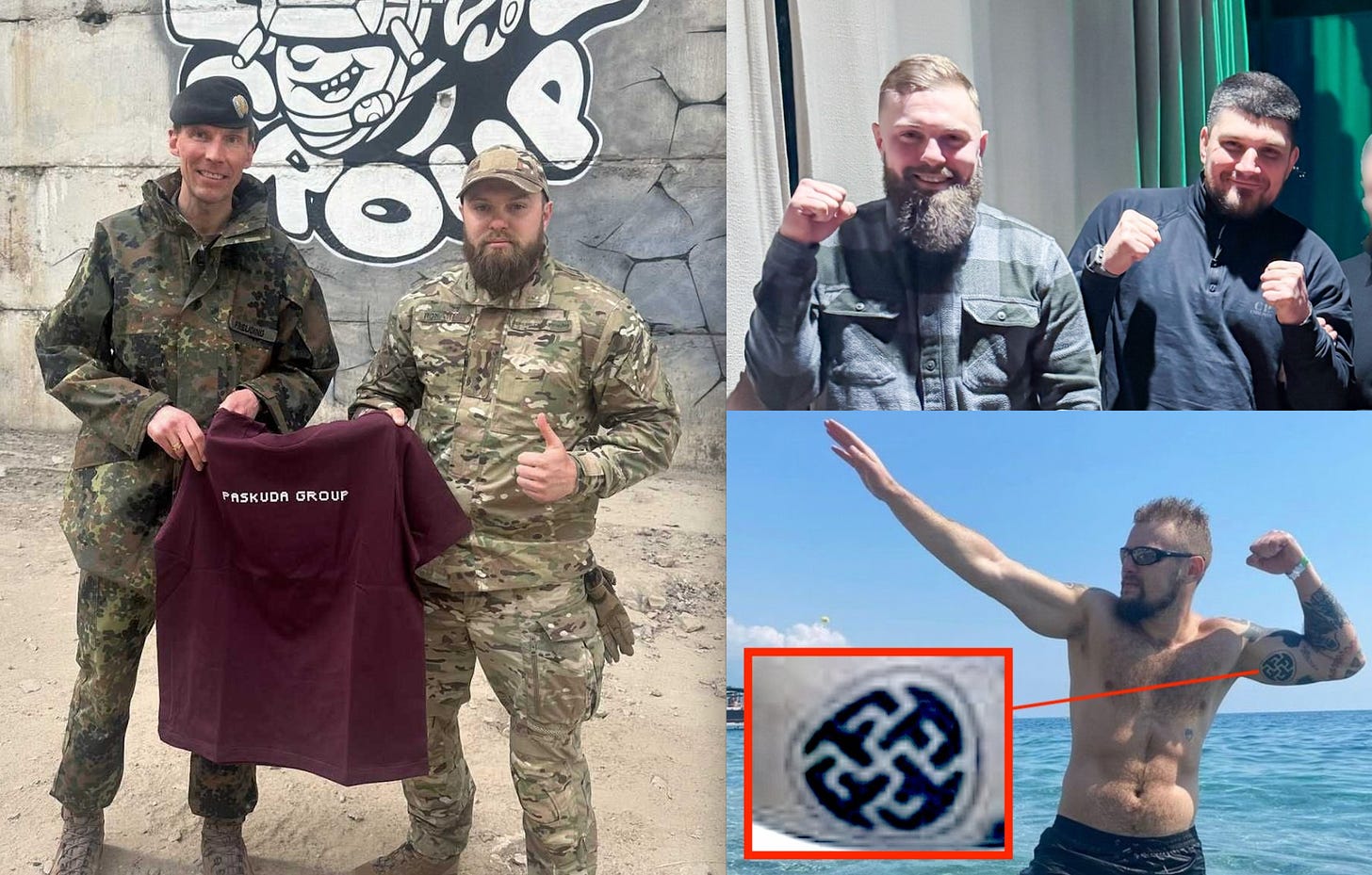 Romanov with German Major General Freuding at Killhouse Academy on May 8, 2025, and more recently with the notorious Russian neo-Nazi “White Rex” (who is banned from the Schengen Area by Germany). The Paskuda group is now the Paskuda battalion in the Azovite “Kraken 1654” regiment.