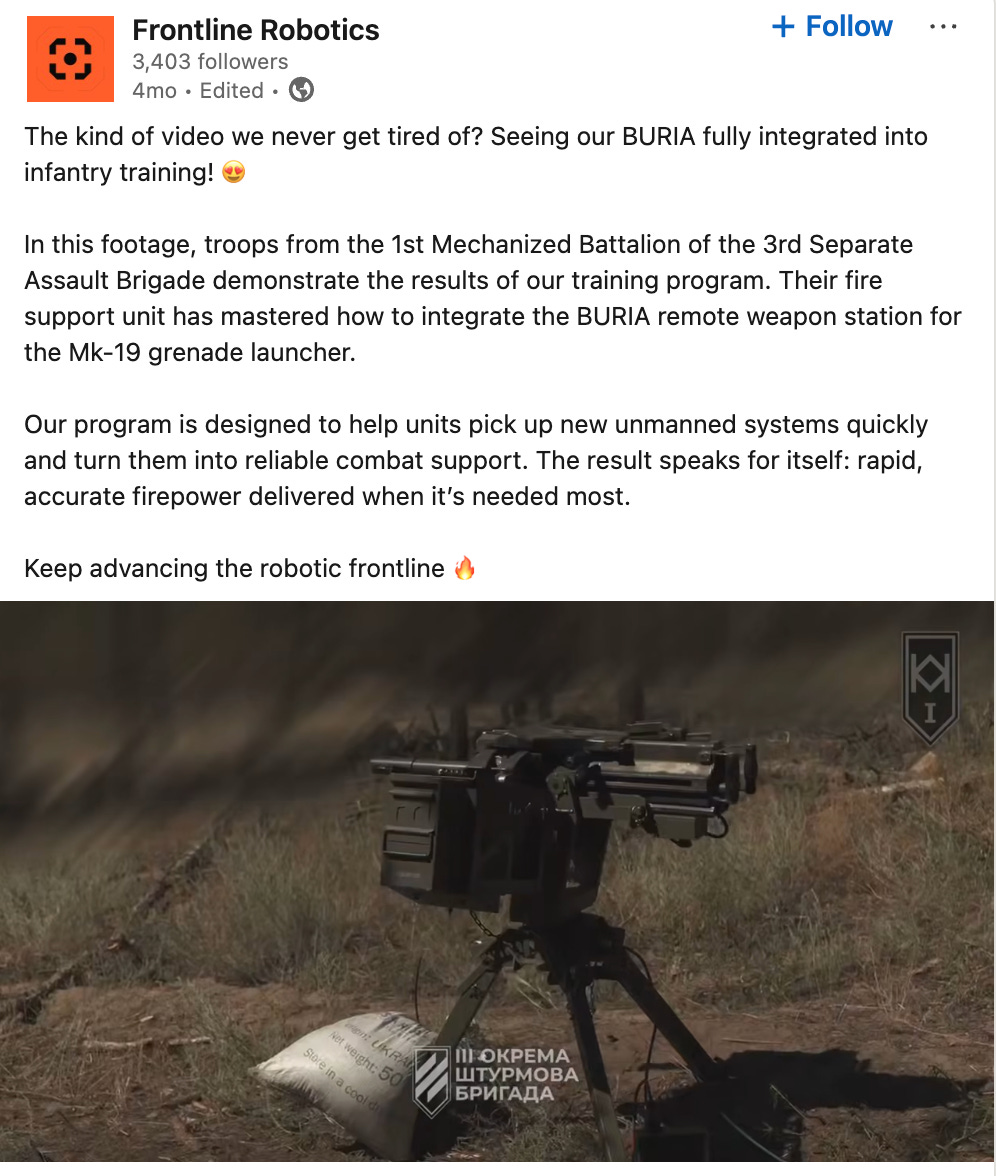 Whereas Victory Drones raises money for drones and trains Ukrainians to use them, Victory Robots is another training program which Dignitas launched in 2025. These entities co-founded KillHouse Academy’s UGV school with the openly neo-Nazi 3rd Assault Brigade, which has taken over the 3rd Army Corps. “When we spun off into Dignitas in 2023, I felt like we really popularized cheap FPV [drone] technology to the masses and broad adoption,” claims Dignitas co-founder Dmytro Kavun. “Now we are popularizing ground robotic systems.”