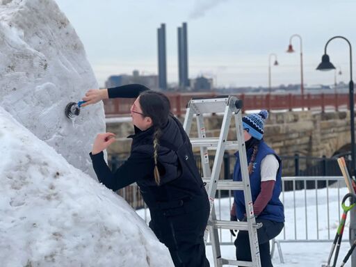 “One of the significances, too, of being a Kwe woman, is that women are the keepers of the water. And so, by sculpting with snow, we are protecting snow water as part of what we are doing, and we approach it as a spiritual practice,” Friedli said. The team did their first snow sculpture five years ago.
