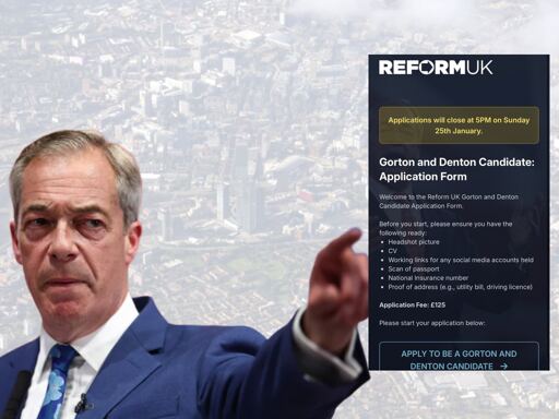 I hear that applications close to be Reform candidate in Gorton & Denton at 5pm today. It seems the party demands, for some reason, that people pay a £125 application fee.