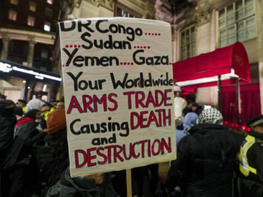 On Tuesday evening 27 January, anti-genocide demonstrators protested at a dinner for arms dealers in London. The demo was organised by CAAT, the Campaign Against the Arms Trade. Police arrested several peaceful protesters.