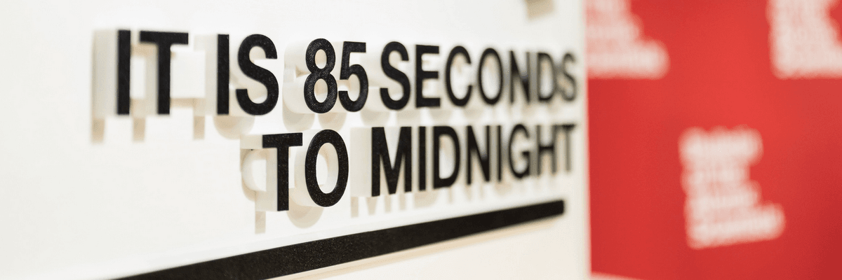 The clock was set to 85 seconds to midnight—or global destruction—four seconds closer than one year ago.