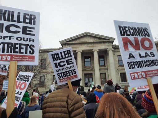 Genevieve Richard with FRSO stated, “They knew when they joined ICE that they were joining Trump’s racist agenda. They knew that they were serving the imperialists putting the boot on all of us. They are servants of the empire, and their lives are lighter than feathers.”