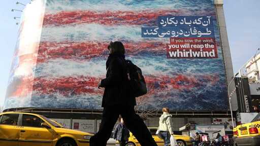A woman walks past an anti-U.S. mural in Tehran, Iran, on January 28, 2026, as a possible U.S. attack on Iran looms (Photo by Fatemeh Bahrami/Anadolu via Getty Images).