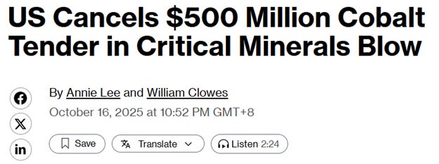 https://www.bloomberg.com/news/articles/2025-10-16/us-cancels-500-million-cobalt-tender-in-critical-minerals-blow