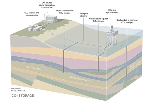 Sandstone beneath the North Sea could be used to store carbon dioxide, a study has claimed. The British Geological Survey (BGS) report shows how sandstone beneath the North Sea could assist with the U.K.'s plans for carbon capture and storage (CCS).