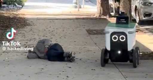 I saw a video of a food delivery robot navigating around the body of a homeless person lying on the sidewalk, and I can’t stop thinking about it.