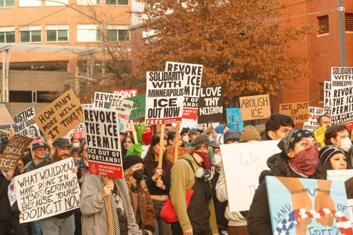 Protesters chanted “Do your jobs!” targeting Wilson and other city officials. Another rally speaker, Beatriz Ibarra, noted Custom Border Patrol agents shot two Portland residents just one day after Renee Good was murdered in Minneapolis. “Our mayor and city council send us nothing more than thoughts and prayers, while ICE agents rampage our streets,” Ibarra said.