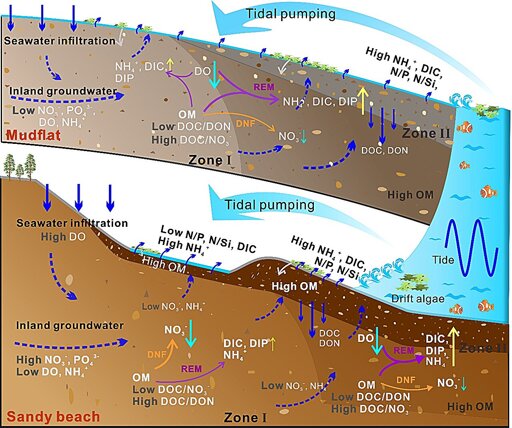 A research team led by Prof. Xiao Kai from the Yantai Institute of Coastal Zone Research of the Chinese Academy of Sciences has systematically elucidated the transformation and transport processes of nutrients in intertidal groundwater. The team employed a combined methodological approach, including multi-depth groundwater sampling, dynamic monitoring, stable isotope tracing, and multivariate statistical analysis. Their findings, published in the Journal of Hydrology, provide scientific evidence to deepen understanding of the terrestrial drivers of nearshore eutrophication.