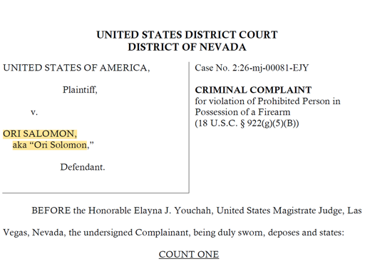 The Las Vegas raid followed a tip-off that lab equipment and hazardous materials were being stored at the residential property. The weapons charge was added later because the original warrant for the raid did not include firearms. The charge sheet says that Salomon/Solomon: