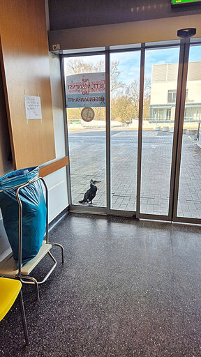 An injured seabird sought help by pecking at the door of an emergency room at a hospital in Germany until medical staff noticed it and called firefighters to help with its rescue.