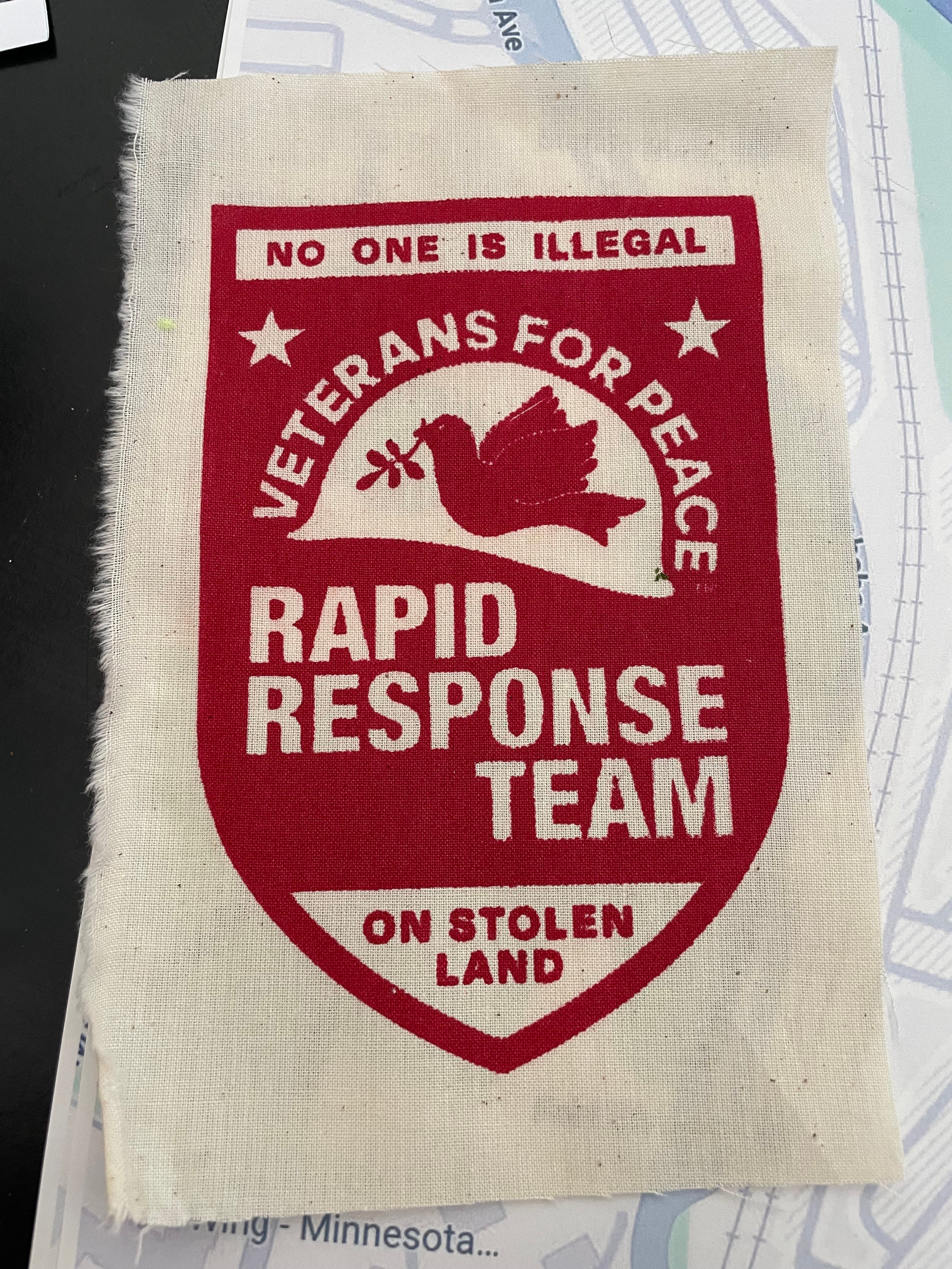 The Veterans For Peace chapter in Minneapolis has a Rapid Response team composed of veteran volunteers from around the country that has provided a presence in various parts of the city. In an article by VFP board member Gerry Condon, he relates that “Younger Post-9/11 veterans have taken the lead. They have been patrolling in at-risk neighborhoods, monitoring for agitators, de-escalating situations at protests, and training people how to stop bleeding. At least four veterans have been arrested while peacefully protesting but have been released without charges.”