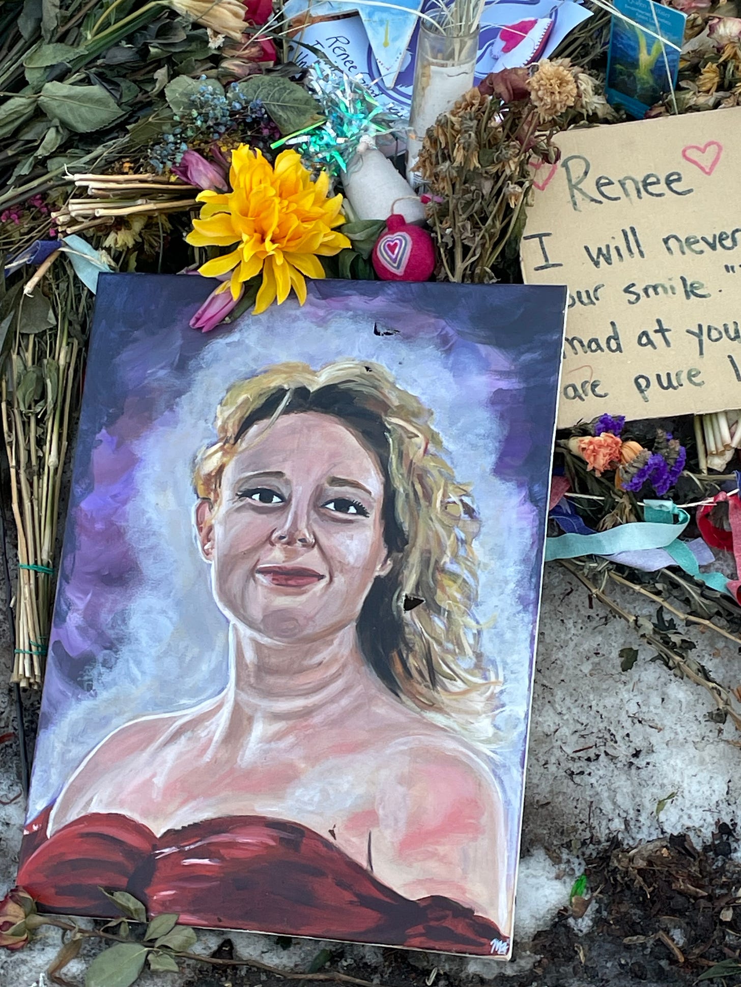 Hundreds of people visit the memorials each day of Renee Good and Alex Pretti. New flowers, photos, poems, statements are placed at the site where each was murdered by ICE agents. We have all seen the videos of ICE agent Jonathan Ross shooting mother of three Renee Good in her car on January 7, 2026 and of Border Patrol agent Jesus Ochoa and Customs and Border Protection officer Raymundo Gutierrez murdering Veterans Affairs ICU nurse Alex Pretti on January 24, 2026 as 5 of them pinned Alex on the ground.