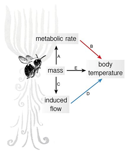 To stay in the air when hovering over a flower, bumble bees continually flap their wings rapidly, a metabolic process that generates a massive amount of internal heat. Their flight muscles work so intensely that they can raise the insect’s body temperature by 30°C to 35°C above the surrounding air. On a scorching summer day, this can put them at risk of overheating, which may be fatal.