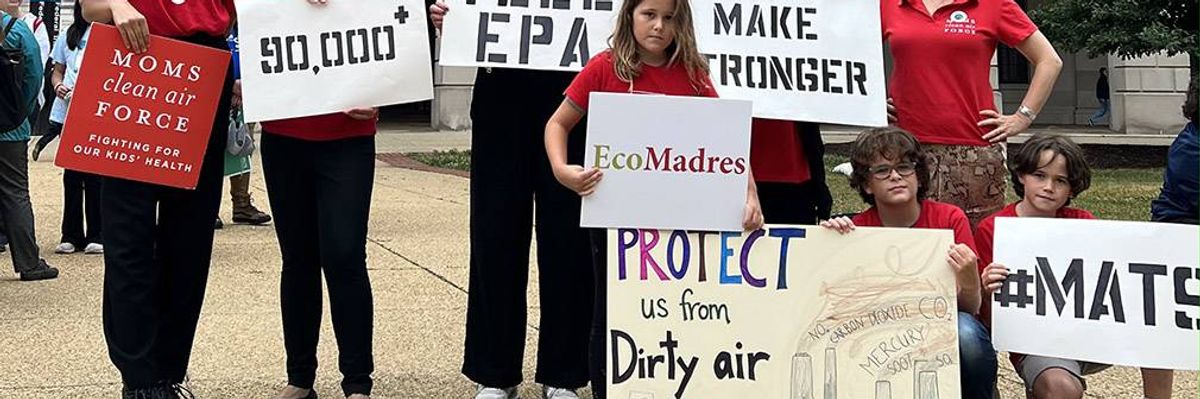 Speaking at a Friday press conference in Washington, DC organized by Moms Clean Air Force, Talia, a local fourth grade student, said that “climate disasters are becoming more common, and they’re hurting our planet, our health, and the future of kids like me."