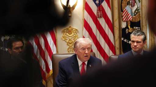 U.S. President Donald Trump speaks as U.S. Secretary of War Pete Hegseth looks on during a meeting of the Cabinet in the Cabinet Room of the White House on January 29, 2026 in Washington, DC. Photo by Win McNamee/Getty Images.