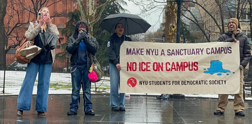 Oko Kanginan, member of NYU SDS stated, “We demand that NYU implement an ICE alert system similar to the existing campus safety alert system, establish procedures to move classes online in the case ICE is present near our campus, and most importantly, ensure Linda Mills and the administration pledge to use university resources to defend international, undocumented and vulnerable students from ICE. We are entitled to the right to free speech, the right to protest, and equal protection under the law, and no one, including our pedophile, rapist, and racist president, can deny them.”