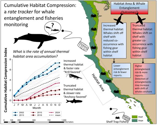 New research shows that, off the U.S. West Coast, humpback whales face a higher risk of getting entangled in fishing equipment during years with lower availability of cool-water habitat, where the whales feed. Jarrod Santora of the National Oceanic and Atmospheric Administration, U.S., and colleagues present these findings in PLOS Climate.