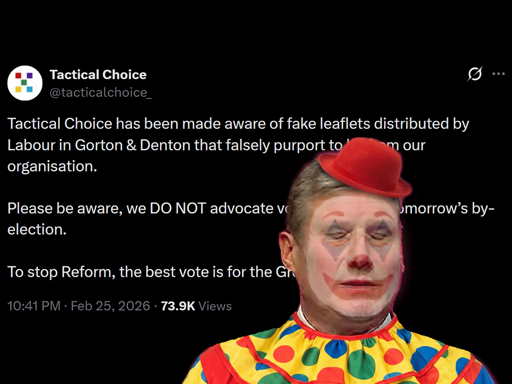 Satirists, responding to Labour latest dirty trick, set up a ‘Tactical Choice’ account on X – criticising Labour for stealing its logo.