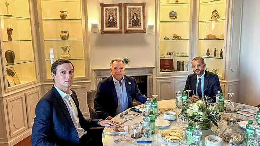 US special envoy Steve Witkoff © and Jared Kushner hold a meeting with Oman’s Foreign Minister Badr Albusaidi ® in Geneva, on February 26. (Photo by Omani Foreign Ministry / AFP via Getty Images)
