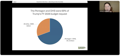 How can we in Illinois and across the nation advocate for a U.S. federal budget that prioritizes peace, economic security, and shared prosperity? On Thursday, February 26, Lindsay Koshgarian, director of the National Priorities Project, gave a presentation on what our tax dollars are going to support and what we can do about it.