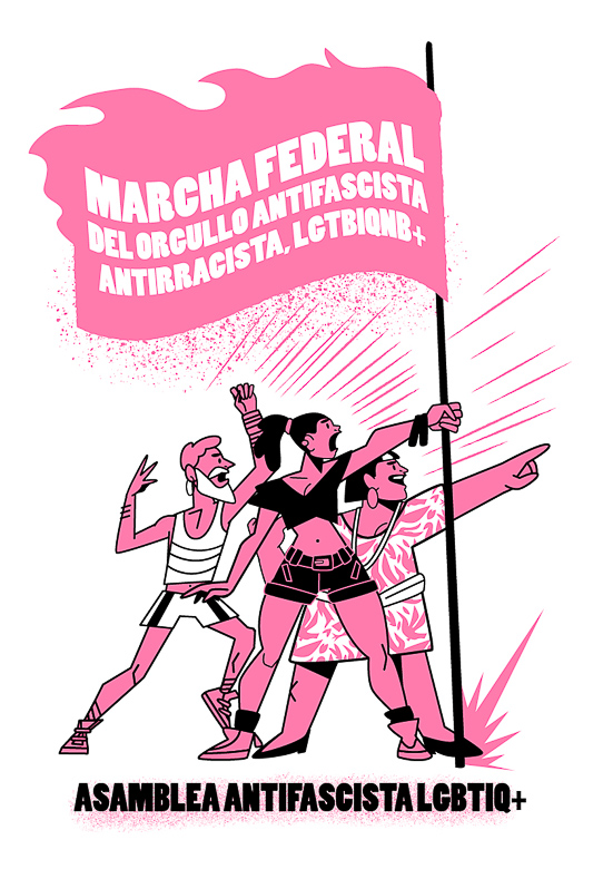 Patricio Oliver (Argentina), poster for the Marcha Federal del Orgullo Antifascista, Antirracista, LGTBIQA+ (Federal March for Antifascist, Antiracist, LGBTQIA+ Pride), 2025.