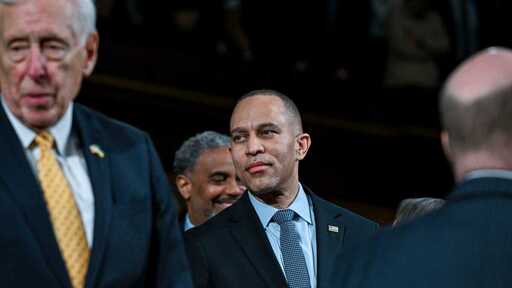 U.S. House Minority Leader Hakeem Jeffries before President Donald Trump’s State of the Union address on February 24, 2026 in Washington, DC. Photo by Kenny Holston-Pool/Getty Images.